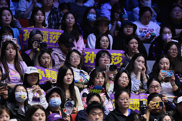 晚间的“压轴戏”,是由世界第一孙颖莎对阵世界第二王曼昱的女单决赛,更是燃爆了现场气氛。陈梦与朱雨玲的铜牌赛刚结束,两人正在混采区接受采访,一板之隔的赛场内,孙颖莎和王曼昱已开始热身。球迷的助威声此起彼伏,完全掩盖了混采区里近在咫尺的对话声。